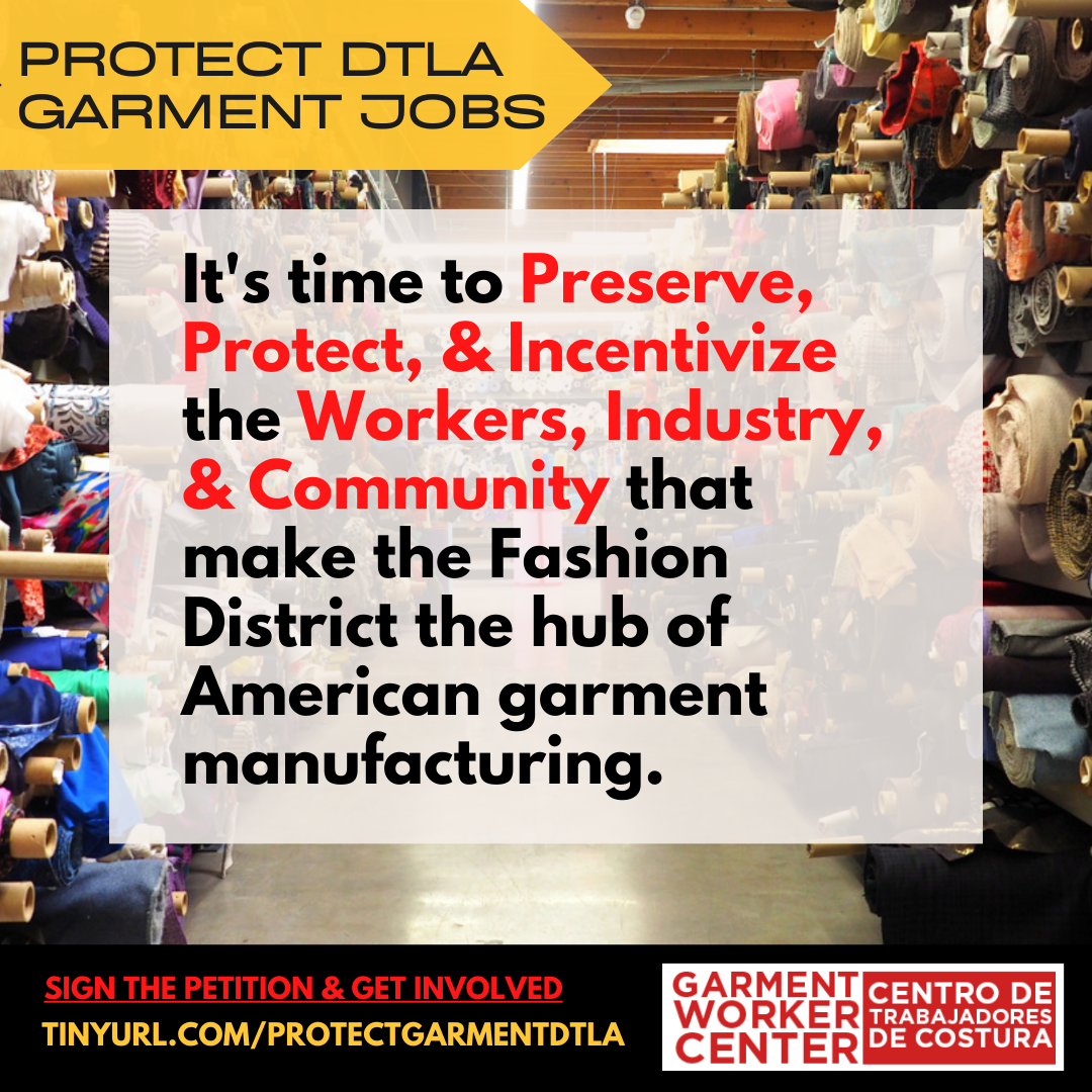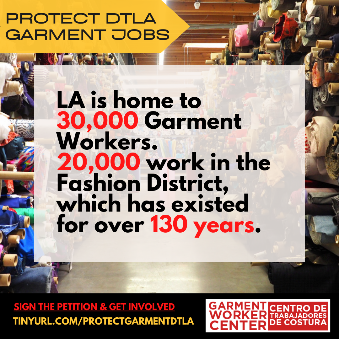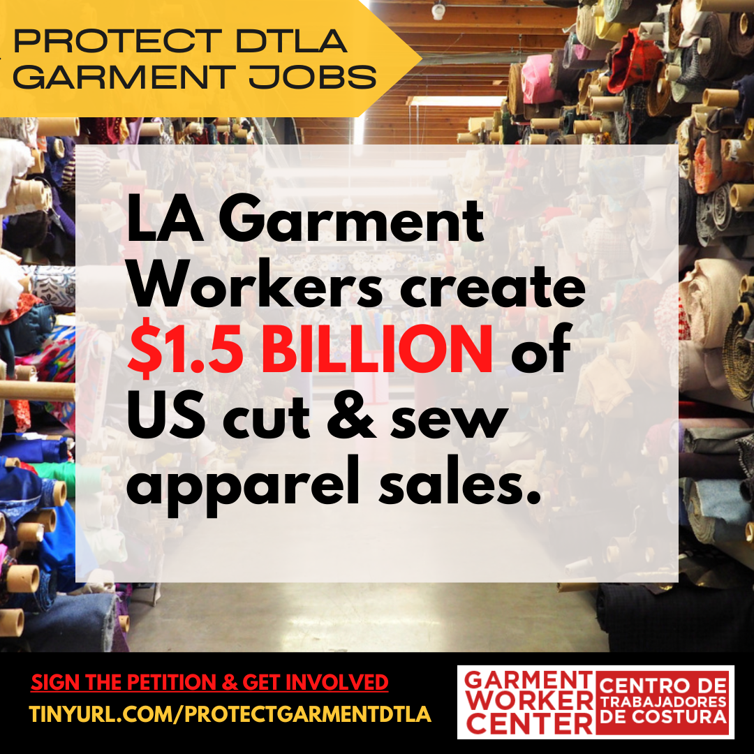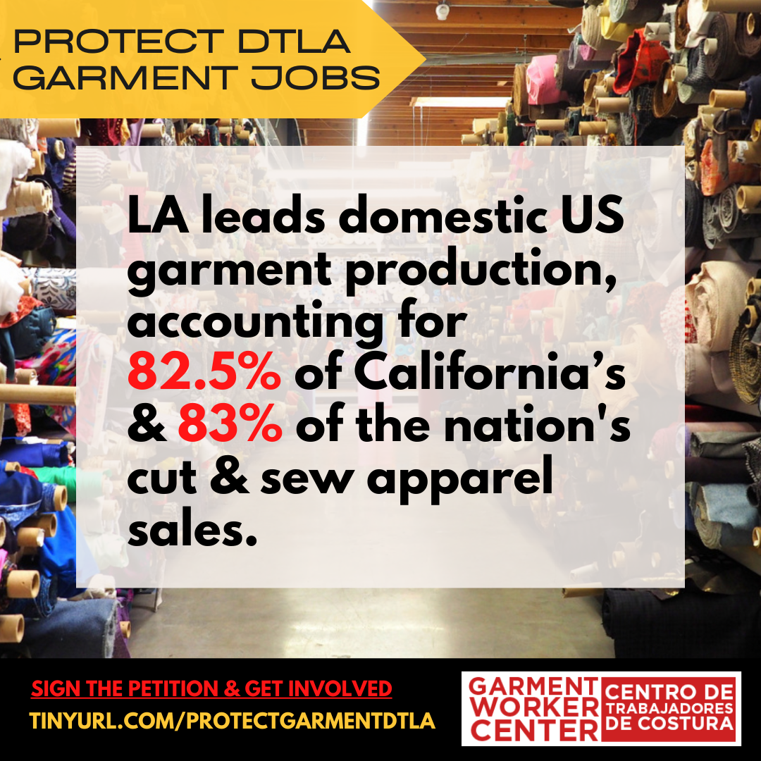LA is responsible for manufacturing 83% of all apparel made in America. Eliminating LA’s Garment District would mean the demise of American-made fashion. Although LA garment workers and business produced $1.5 billion in US cut & sew apparel sales in 2019 alone, no one in the industry was consulted about the plan and we were only recently made aware of their plan to displace us.