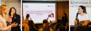 Beatrix Perks, Associate Client Director of Positive Luxury, hosted a panel discussion on the critical role of responsible sourcing in shaping a sustainable future, with panellists Olivia Canham, Sustainability Manager of Monica Vinader, and Siobhan Kelly, Associate Director of David Collins Studio. They shared insights on how they have implemented responsible sourcing, the resulting benefits to their businesses and advice to others looking to improve their procurement practices.