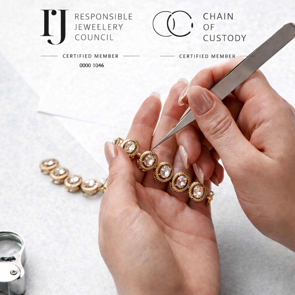 Fine Jewellery embeds strong governance across its value chain through clear ethical standards, certifications, and supplier oversight. Leadership emphasises integrity, transparency and long‑term relationships, underpinned by rigorous Know Your Counterparty checks and a comprehensive Supplier Code of Conduct for all partners. The company sources 100% recycled precious metals exclusively from Responsible Jewellery Council (RJC) Chain of Custody–certified refineries and is the only RJC member with an audited Provenance Claim for jewellery crafted from recycled gold and platinum. Natural diamonds are procured in line with the Kimberley Process Certification Scheme and the World Diamond Council’s System of Warranties, with suppliers required to provide warranty statements and disclose treatments. Governance is reinforced by continuous supplier engagement, formal risk assessments, and robust inventory and record‑keeping requirements.