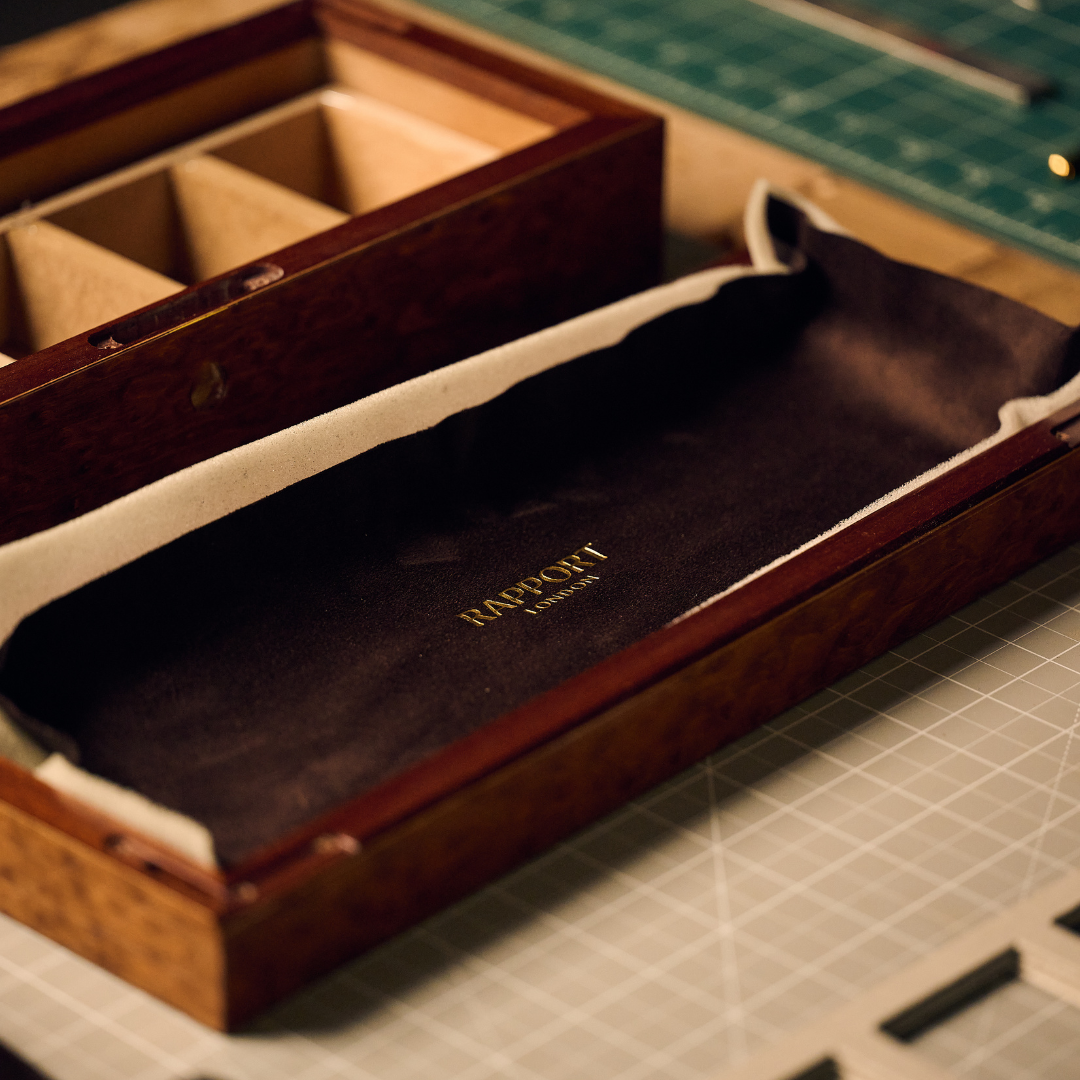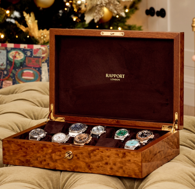 For over 125 years, Rapport London has perfected the art of designing exquisite watch and jewellery accessories. A fourth-generation family house defined by its rich heritage, Rapport creates the finest selection of watch winders, collector boxes, trunks, and travel companions for treasured timepieces and jewellery. Guided by timeless elegance, innovation, and impeccable craftsmanship, every Rapport creation is made to be cherished for generations.